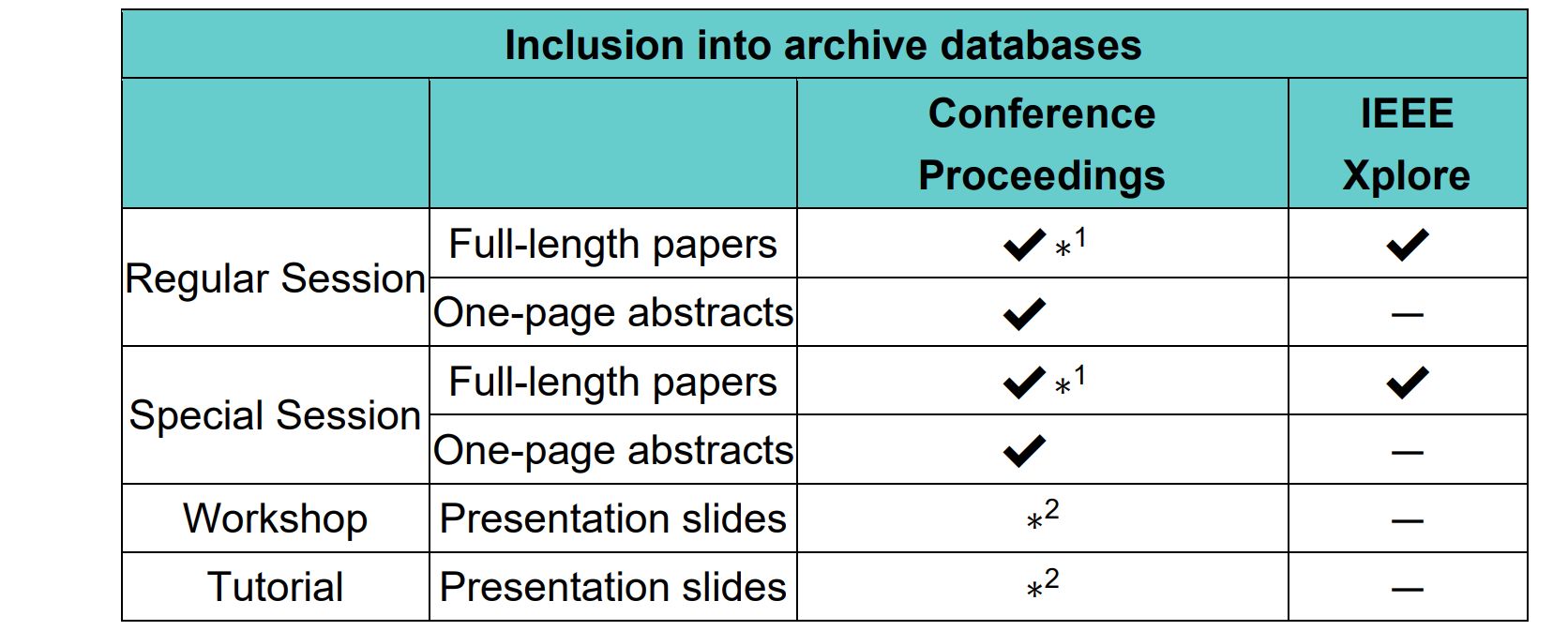 ∗2 The Workshop/Tutorial speakers have the option to have their presentation materials (manuscripts or presentation slides) published in the conference proceedings.